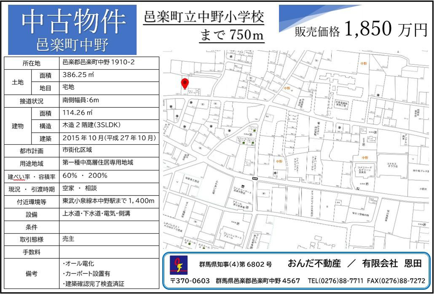 更新中野㉚邑楽町中野2802