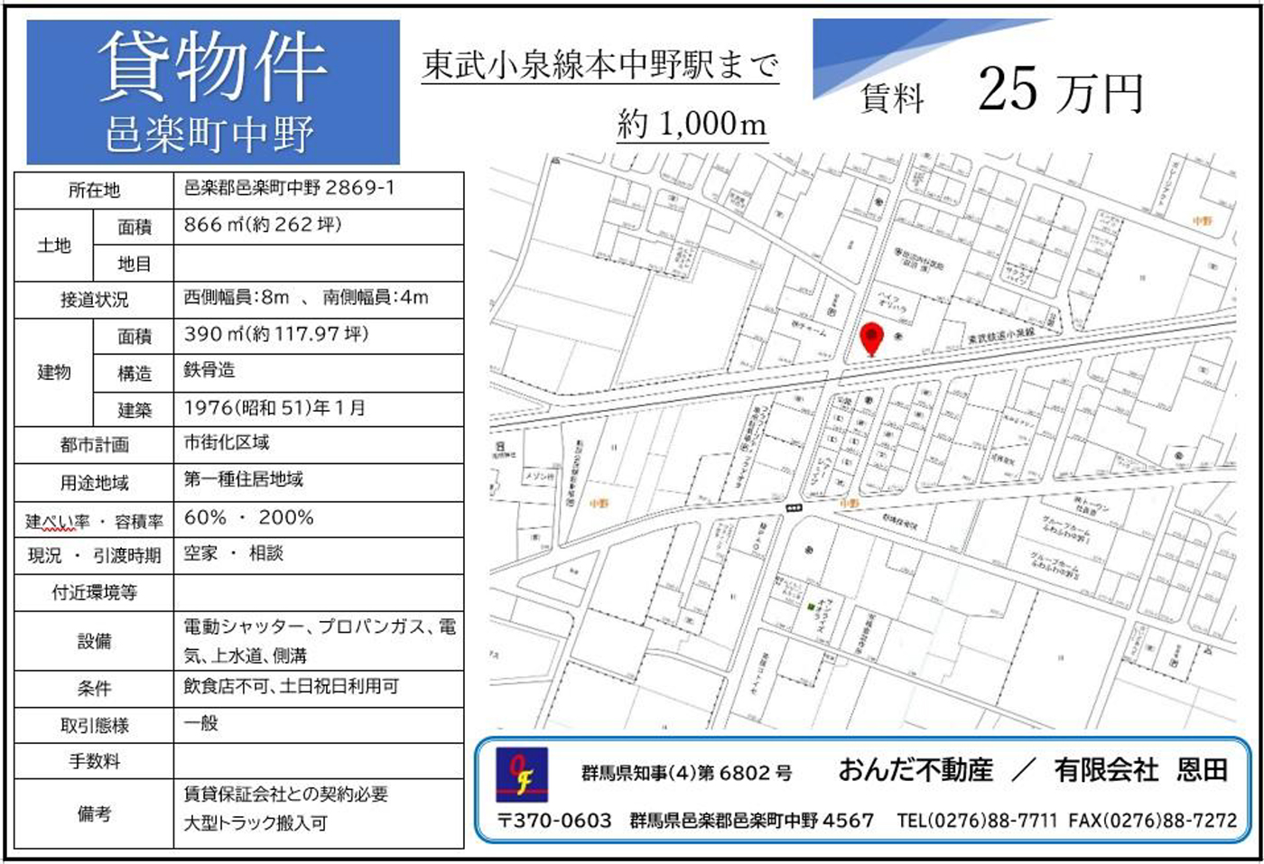 New貸倉庫中野㉟邑楽町中野2869-1